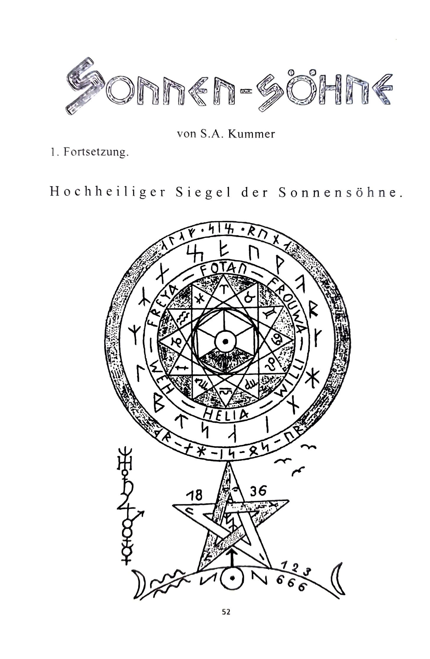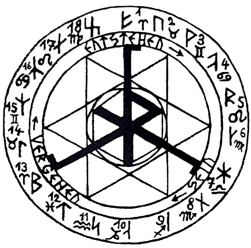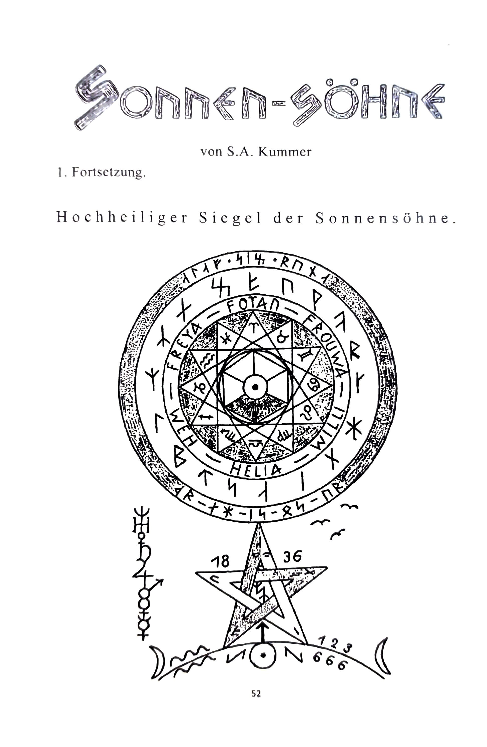 (A more detailed explanation of the Seal of the Sun-Sons may not be given. The advanced reader who has penetrated into runic lore and astrology will find a good interpretation through study. The deeper secrets of the seal will be revealed to him entirely according to his level of development.
